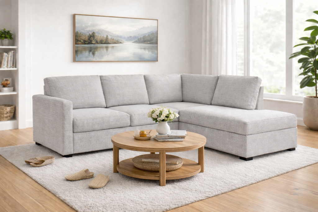 Nugarinės baldų dalies audinys nesiskiria nuo pagrindinio baldų audinio, todėl Latte kolekcijos baldus galėsite statyti bet kurioje kambario vietoje, jie iš visų pusių atrodys estetiškai.