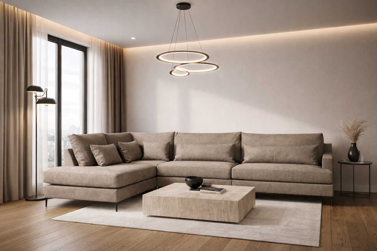 Nugarinės baldų dalies audinys nesiskiria nuo pagrindinio baldų audinio, todėl Latte kolekcijos baldus galėsite statyti bet kurioje kambario vietoje, jie iš visų pusių atrodys estetiškai.